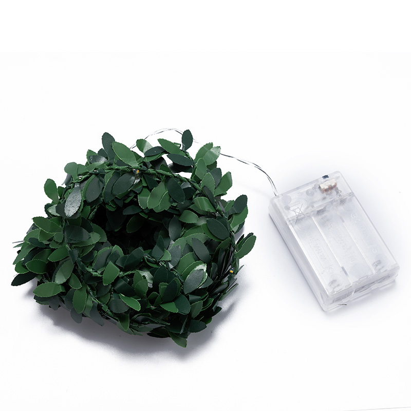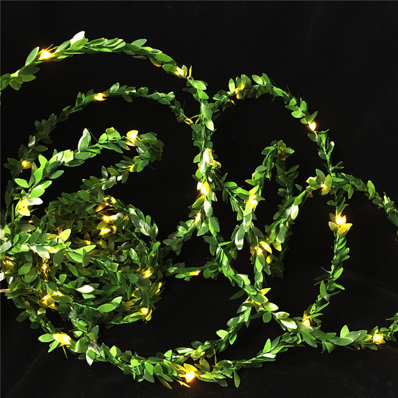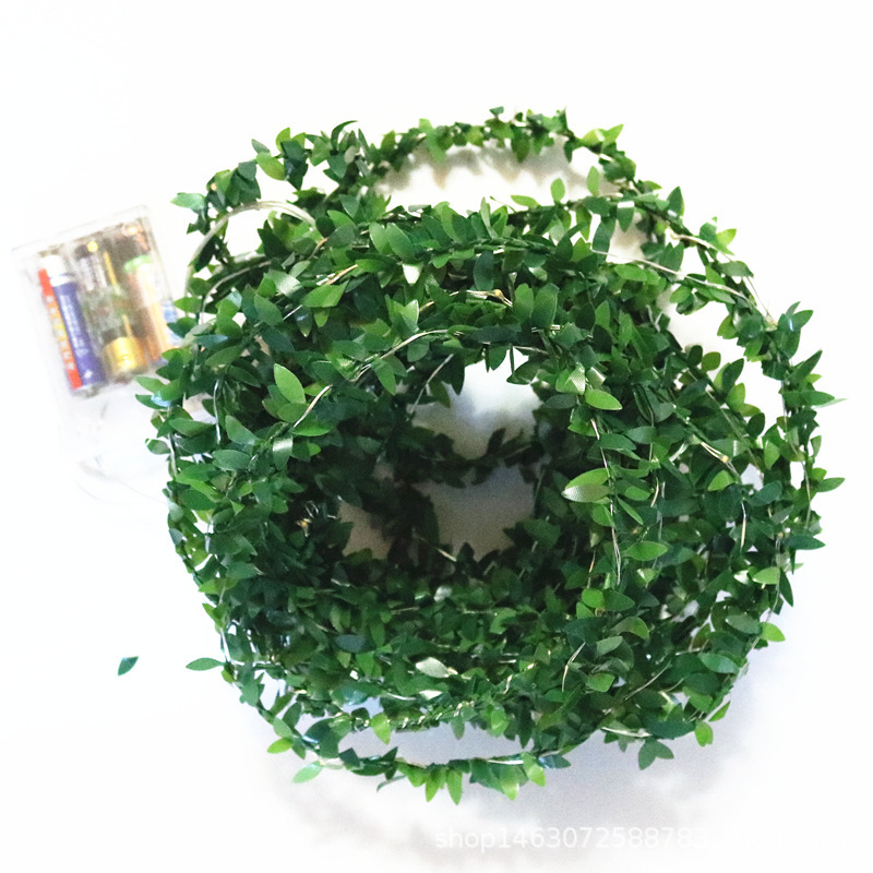 Green copper wire lamp winding plant leaves small colorful lights